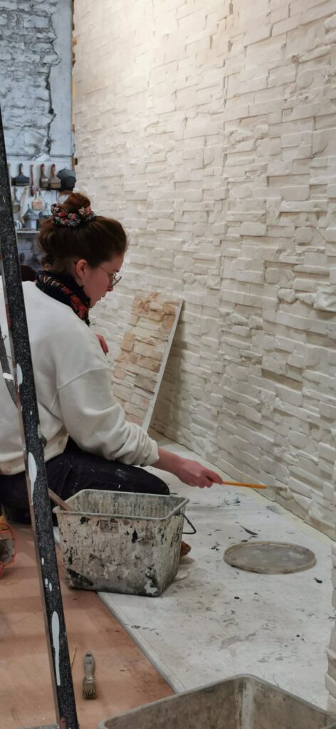 À la suite de ma formation initiale de peintre en décor, j’ai approfondie mes connaissances dans le bâti ancien par le biais de l’Ecole d’Avignon. Ayant un attrait pour le patrimoine ancien ce cursus m’a initiée aux techniques traditionnelles du décor peint en lien avec le bâti. Tourner vers des techniques plus naturelle et en éthique avec le bâtiment.